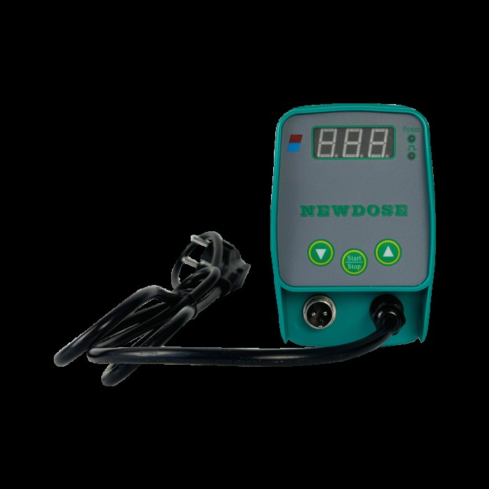 Панель управління включає цифровий дисплей, два світлодіодні індикатори статусу роботи і три сенсорні кнопки меню управління:1. Дисплей показує поточну робочу частоту тактів за хвилину.2. Індикатори статусу роботи - Світлодіод «Power» загоряється під час увімкнення живлення та горить під час роботи насоса. - Світлодіод тактів блимає при кожному такті.3. Меню керування складається з кнопок START/STOP, ∨, ∧ - START/STOP використовується для запуску та зупинки насоса - ∧ використовується для збільшення витрати - ∨ використовується для зменшення витрати. , Соленоидный дозировочный насос DFD-02-07-M-PPV-A - с функцией регулирования производительности позволяет дозировать ингибиторы солеотложений и образования накипи, флокулянты, дезинфицирующие растворы, пищевые добавки, консерванты.