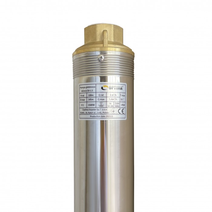 Насос скважинный с повышенной устойчивостью к песку OPTIMA 4SDm3/20 1,5 кВт 145м диаметром 4" предназначенный для подачи воды из скважин (диаметром от 4 "или 101 мм) и открытых водоемов с глубиной больше чем 9 м, когда использование поверхностного насоса невозможно или нецелесообразно.