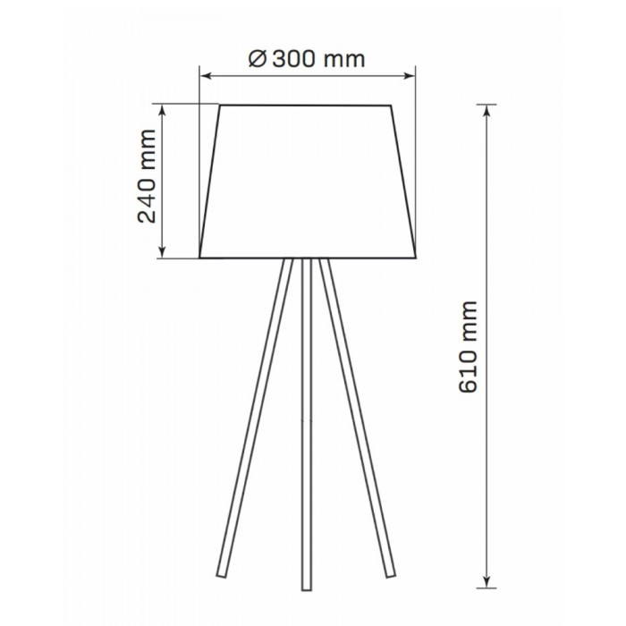 Висота становить 610 мм, довжина - 300 мм, ширина - 300 мм.