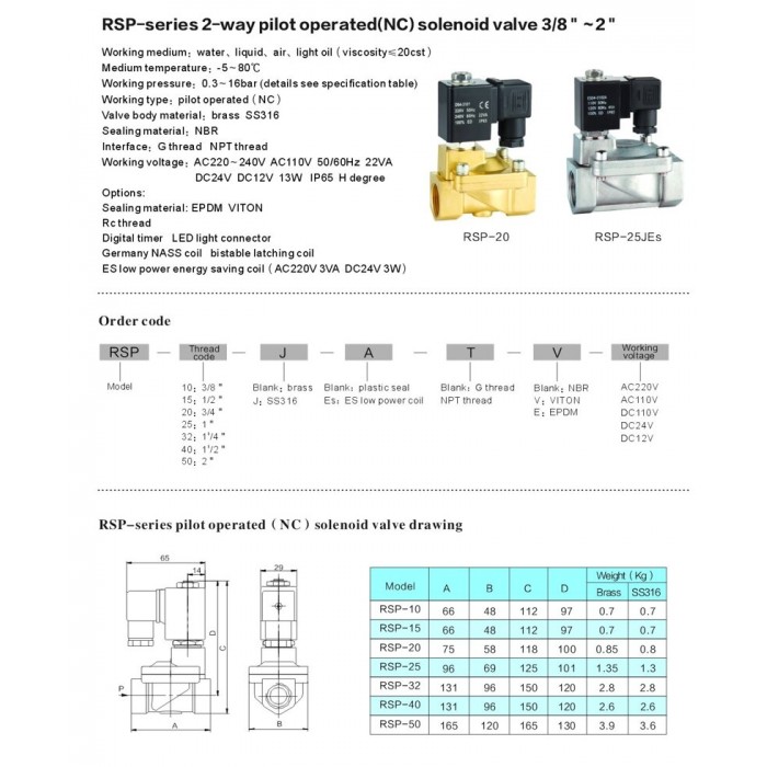 Нормально закрытый клапан косвенного действия 2" RSP-50-E-AC220V 0,3-16 bar