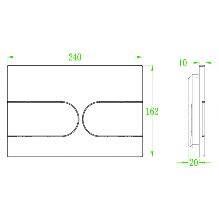 Панель смыва Koer KT-0604-03 240x160x10mm пластиковая, закругленная кнопка (KR5322)