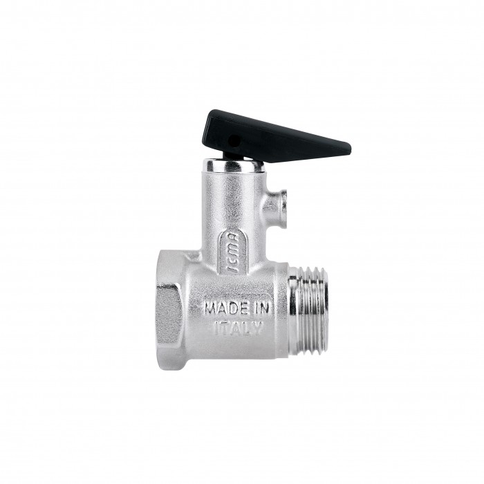 Предохранительный клапан ICMA Арт. GS08 с ручкой для водонагревателя. Имеет наружную – внутреннюю резьбу. Фиксированная настройка предохранительного клапана 8 Бар ± 0,5.