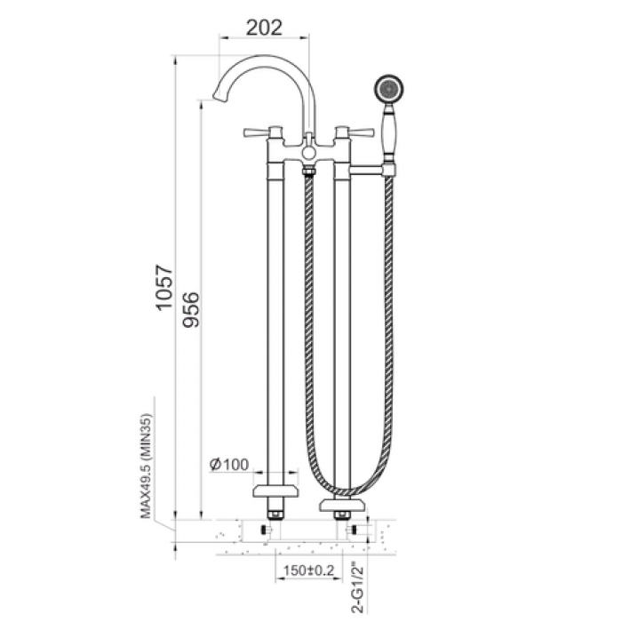 PODZIMU LEDOVE смеситель для ванны отдельностоящий, двухвентельный, поворотный излив, латунь, с ручным душем, цвет хром. Модель установленных кран-букс HB-078 3/4"