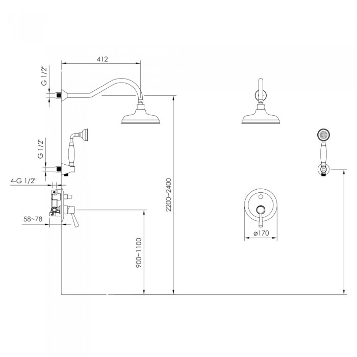 Cмеситель для душа; однорычажный; керамический картридж 35мм от Sedal, Испания; расход воды до 22 л/м; подходит для проточных нагревателей; цвет бронза тосканская. Модель установленного картриджа Sedal EN- 35 С/D...