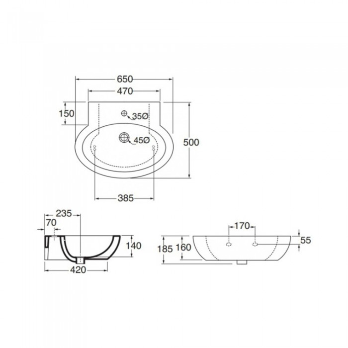 Раковина для ванной комнаты Azzurra Comoda COM65B1/S отлично будет смотрится, как с пьедесталом, так и без него подвешенный на стене с помощью кронштейнов. Чаша изготовлена в форме продолговатого овала с отверстием для перелива и отверстием для слива воды с диаметром d=45 мм. Диаметр отверстия для смесителя d=35 мм. Благодаря своим формам она легко моется, а на пристенной поверхности можно разместить ванные принадлежности и аксессуары.