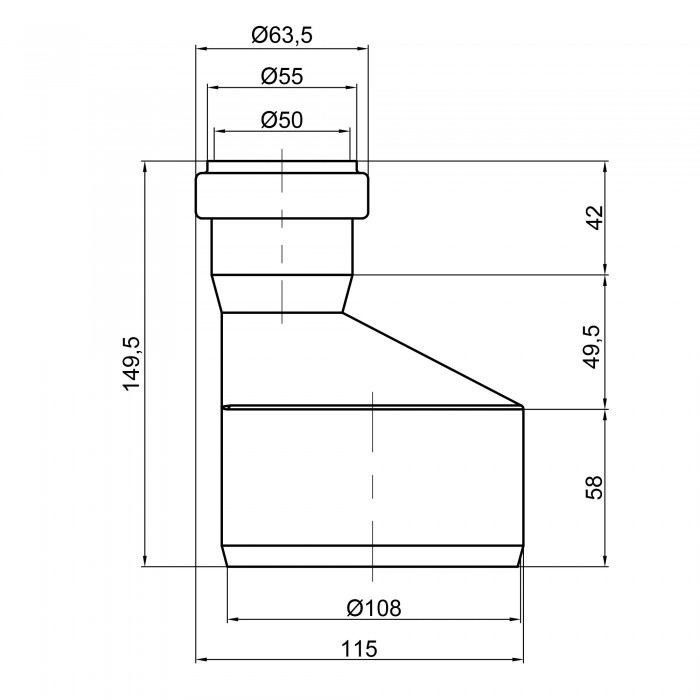 Редукция прямая TA Sewage 110х50 мм - соединительная часть трубопровода внутренней канализации. Редукция необходима для перехода с большего диаметра трубы на меньшие ответвление системы канализации. Данный фитинг позволя...