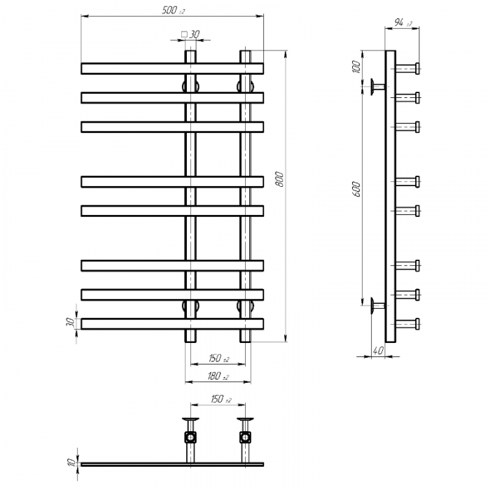 Полотенцесушитель водяной DEVIT LI500800 LINEA П8 500х800 из нержавейки, цвет хром