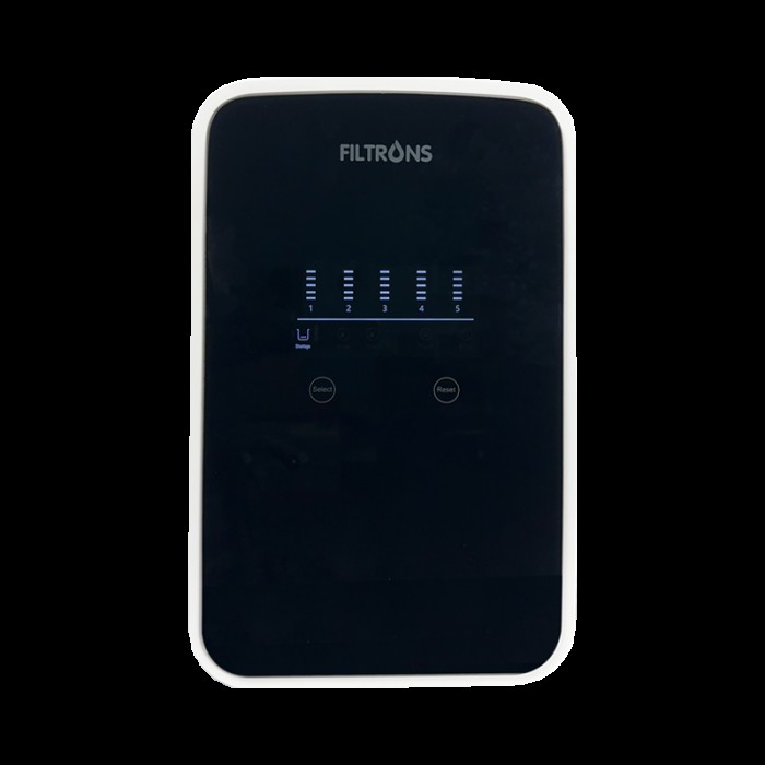 Система зворотного осмосу FILTRONS 400 обладнана інформаційним екраном, що відображає ресурс змінних картриджів та поточний стан фільтра. Також, за допомогою сенсорних кнопок Select та Reset можна здійснювати керування функціями системи.
