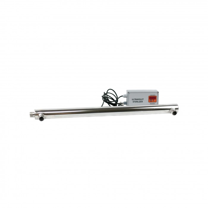 Ультрафиолетовый обеззараживатель воды E-305 представляет собой металлический корпус, внутри которого размещена ультрафиолетовая лампа в специальном кварцевом рукаве. Предназначен для обеззараживания воды питьевого и хозяйственно-бытового назначения в доме, гостиницах, кафе, ресторанах, пунктах и автоматах по разливу воды, в составе установок очистки питьевой воды, а также в промышленности для различных технологических процессов. Вода подается в корпус ультрафиолетового обеззараживания, где собственно и происходит обезвреживание микроорганизмов. Входящий поток воды омывает кварцевый чехол и получает необходимую дозу ультрафиолетового облучения. Кварцевый рукав вокруг лампы предотвращает попадание воды в корпус излучателя, обеспечивая безопасность системы. Основные преимущества: – высокая доза УФ-излучения (30 мДж/см2), достаточная для дезактивации широкого спектра микроорганизмов; - физический метод обеззараживания – не требует применения дополнительных реагентов и не образует стоки; - корпус изготовлен из нержавеющей стали; - камера выполнена из высокочистого кварца и имеет повышенную устойчивость к образованию отложений и разрушению; - длительный срок эффективной работы – до 9 000 часов. Комплектация системы УФ обеззараживания Pallas Е-305 Plus: - корпус из нержавеющей стали в составе; - кварцевый рукав; - ультрафиолетовый излучатель; - блок питания (электронный балласт); - панель управления: E-Plus.