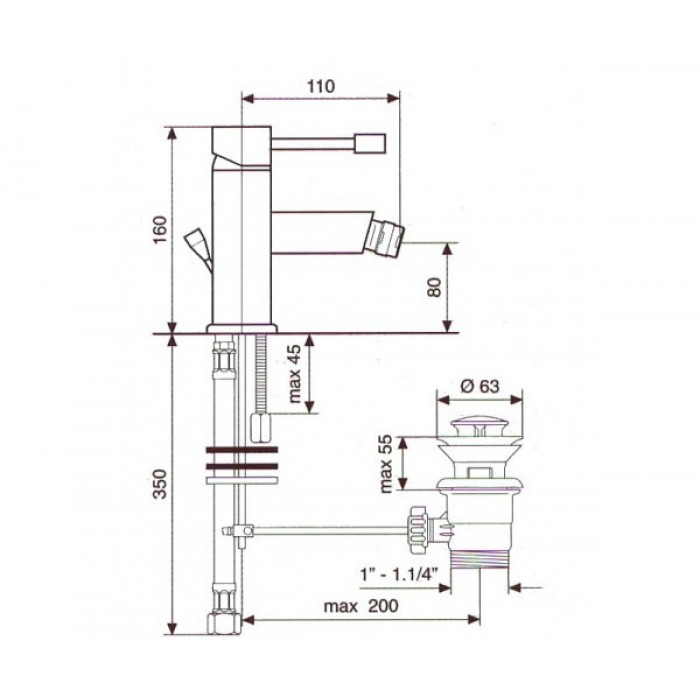 Смеситель для биде Emmevi EDEN CR71004 шланги для подключения воды в комплект не входят; ...