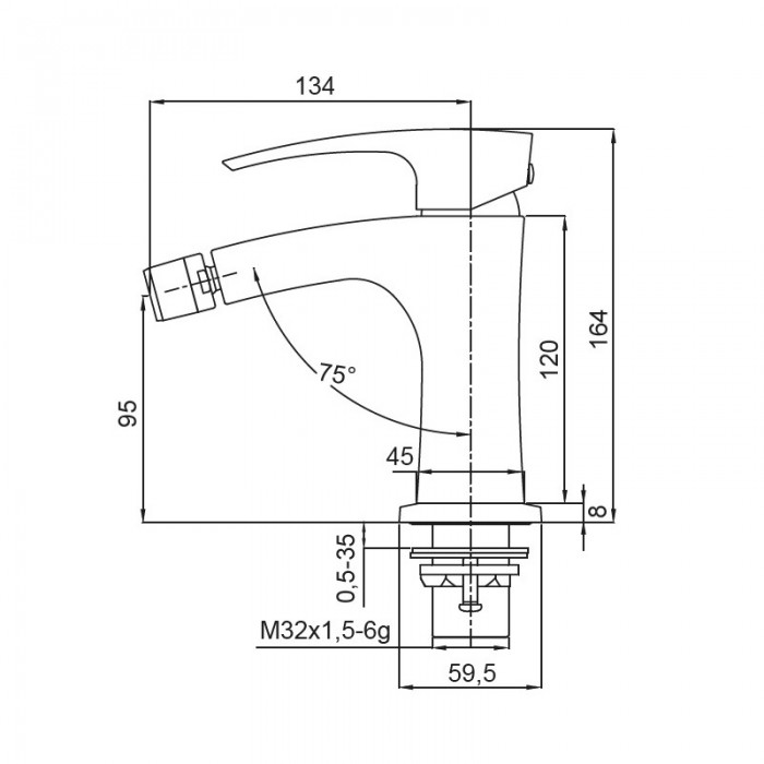 Смеситель для биде KOER KB-20007-05 (KR3459), черный