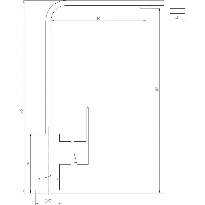 Высота излива - 33.5 см