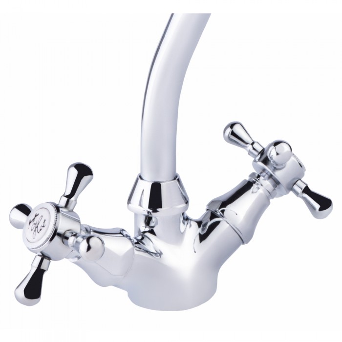 Смеситель для кухни Lidz (CRM) Mayfair 16 272K-1 будет смотреться эстетично и подойдет под любой интерьер комнаты благодаря глянцевой блестящей поверхности. Он изготовлен из высококачественной латуни. Изделие монтируется в отверстие для смесителя на столешнице или на кухонной мойке врезным способом. Напор воды и ее температура регулируются поворотом двух удобных вентилей в необходимое положение.