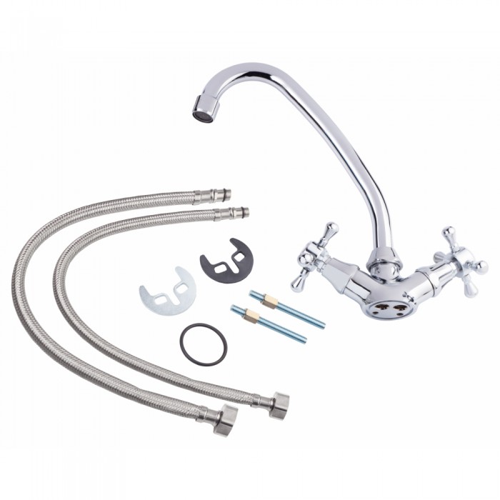 Смеситель, гибкая подводка, крепежи.
