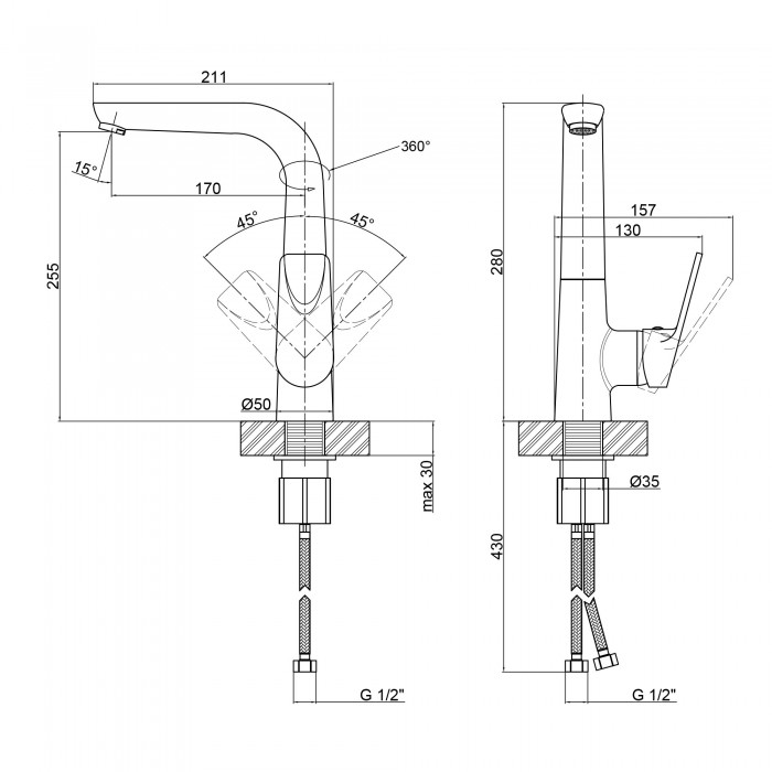 Длина гибкой подводки - 430 мм.