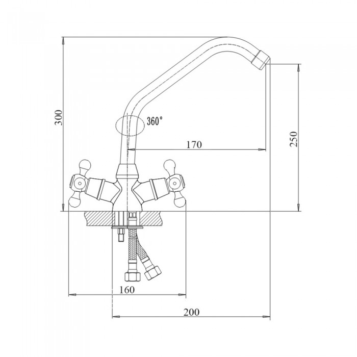 Смеситель для кухни SW Mayfair EC 271 изготовлен из латуни. Благодаря глянцевому хромированному покрытию имеет оригинальный внешний вид. Выполнен в классическом стиле, с вентильными ручками для переключения потока холодн...