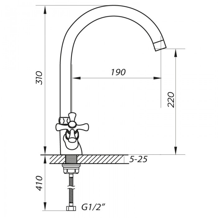 Смеситель для кухни ZERIX TLA 722 с полнооборотной кран буксой (ZX2963)