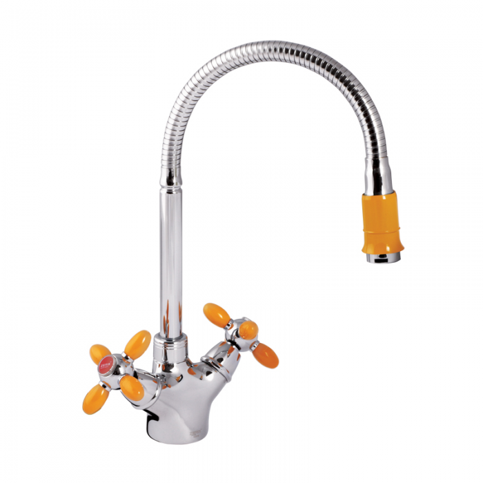 Смеситель для кухни ZERIX Z5860-10 (оранжевые ручки) (ZX0350)