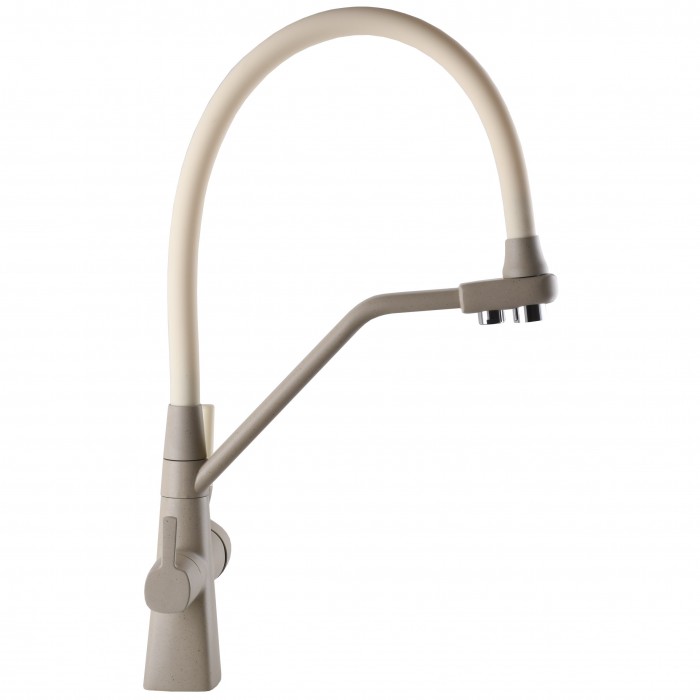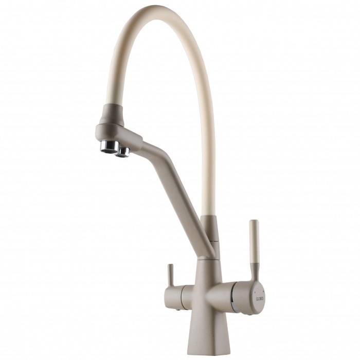 Смеситель кухонный Globus Lux LAZER GLLR-0700-L-04-06, комбинированный под ОСМОС, гофрогусак цвета слоновой кости, цвет корпуса- бежевый матовый