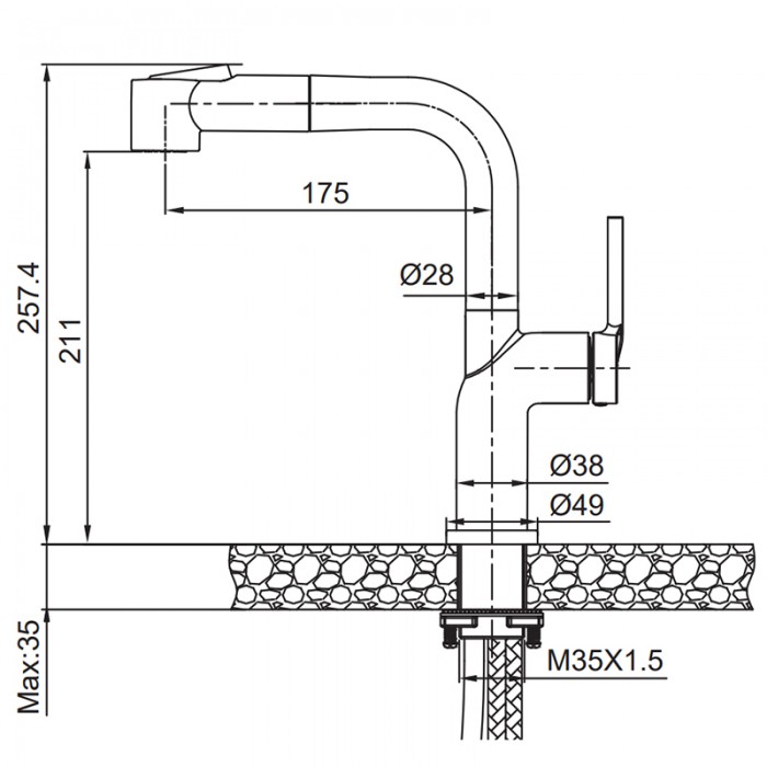 Смеситель для кухни с выдвижным изливом Koer KI-70021-02 (из нерж. стали) (Цвет нерж) (KR4798)
