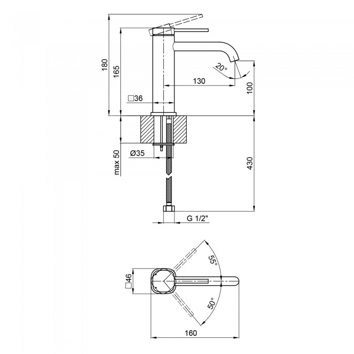 Высота излива, мм