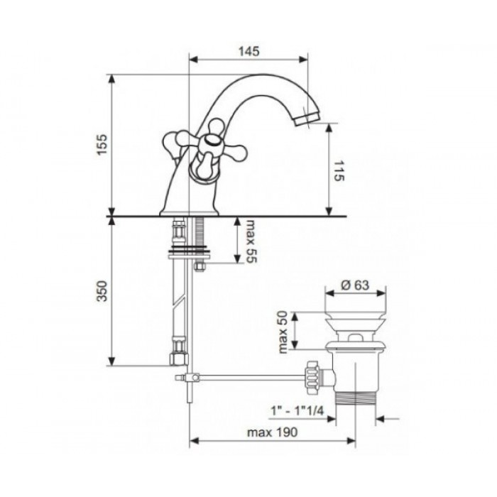 Двухвентильный смеситель для умывальника Emmevi DECO classic BIG BR12013 Двухвентильный литой смеситель на умывальник Донный клапан в комплекте ...