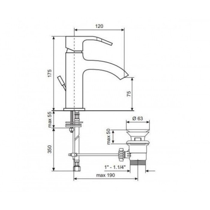 Смеситель для раковины EMMEVI NIAGARA CR74003 c аксессуарами с донным клапаном ...