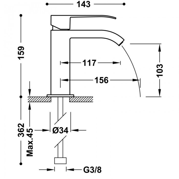 Производитель Tres Страна Испания Высота смесителя 159 мм Вынос излива 117 мм Назначение смеситель для умывальника Тип монтажа наружный врезной Тип смесителя однорычажный Ти...