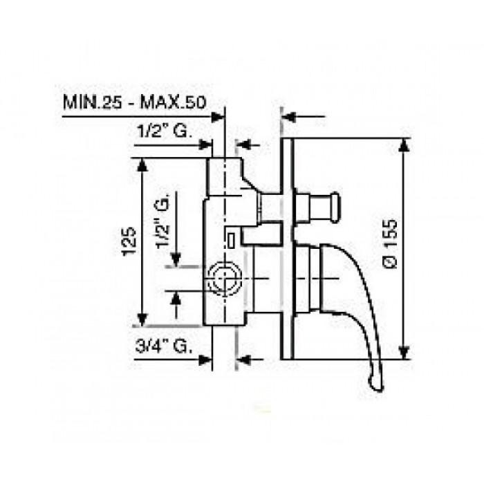 Смеситель для ванны EMMEVI GIGLIO CR8019L Однорычажный смеситель для ванны встраиваемый в стену. ...