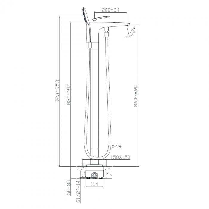 Смеситель для ванны отдельностоящий VOLLE 12-33-101, хром