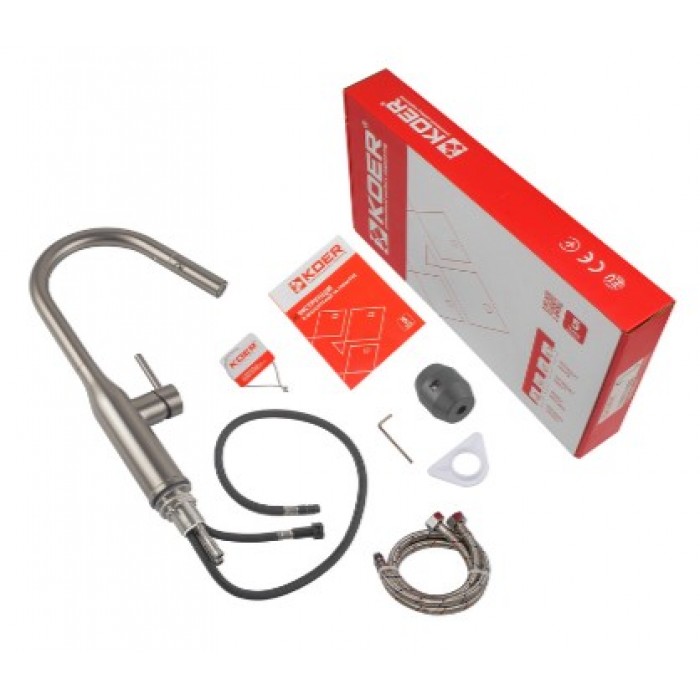 Смеситель кухонный с выдвижным изливом KOER KI-70004-07 (нержавеющая сталь) (KR3387)
