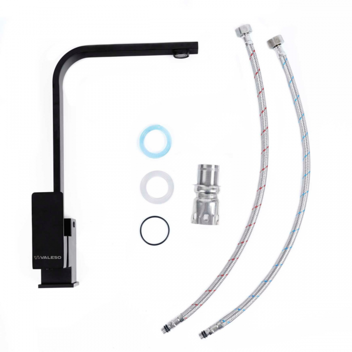 Змішувач VALESO 990 KT (Чорний) - це практичний та стильний вибір для вашої кухні. Його функціональність, сучасний дизайн та якість допоможуть покращити роботу з водопостачанням на вашій кухні.