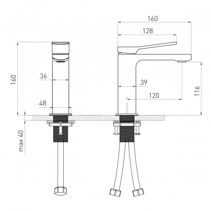 Тип управления: однорычажный Тип монтажа: врезной, 1 отверстие Материал: латунь Цвет: брашированный никель Без донного клапана Расход воды: до 9 л/мин Керамический картридж Sedal Ø 26 мм Аэратор ABS-пластик В комплект входят гибкие шланги для подключения воды с накидной гайкой 1/2", длина 50 см