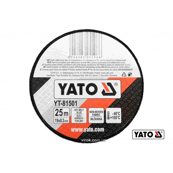 Стрічка ХБ YATO : 25 м x 19 x 0.3 мм,(тканинна основа) t= -40°С - +105°С для мотання пучків кабелів