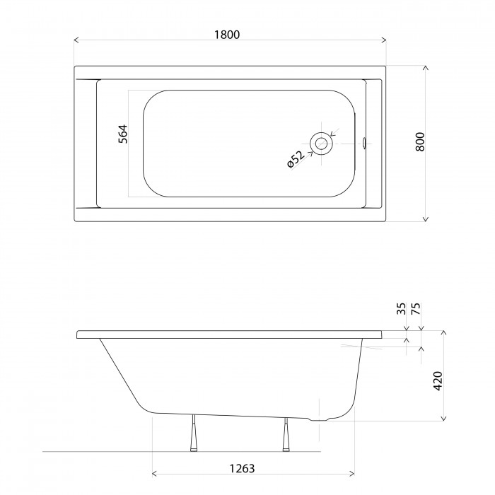 Ванна прямоугольная Kolo SUPERO 180*80 см (5362000), с ножками SN14