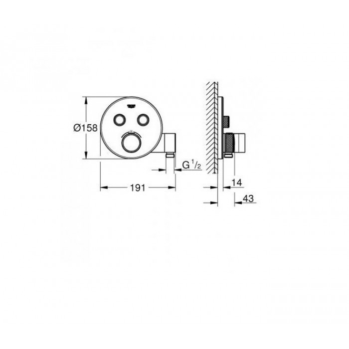 SmartControl Термостат для душа/ванны на 3 потребителя Вид монтажа: скрытый Форма: круглая Диаметр: 158 мм Способ монтажа: настенный С держателем для душа Материал: латунь Тип подвода: встраиваемый механизм Расход воды: ...