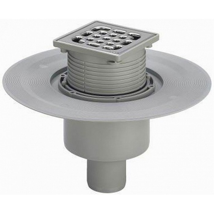 Трап с фартуком с вертикальным отводом для внутреннего водоотведения, скрытый монтаж, диаметр 70 мм, длина 90 мм, квадратной формы, с гидрозатвором, серый