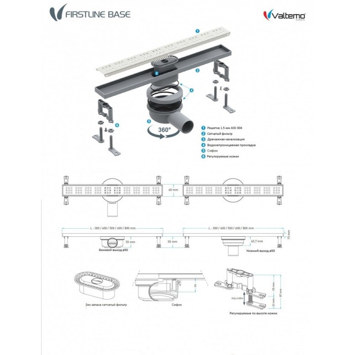 Трап для душа Valtemo Firstline Base 80cm 50 (VLD-510330) (SNS)