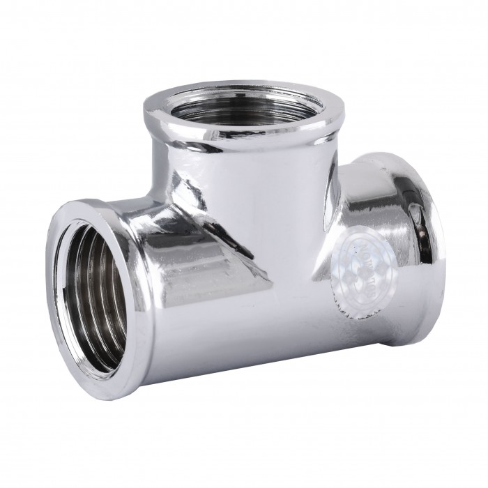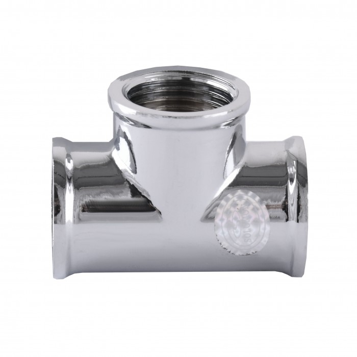 Тройник латунный хромированный - это фитинг, который используется как деталь трубопровода для присоединения труб к основной магистрали под углом 90 градусов и представляет собой объединённые полые цилиндры из латуни с внутренними резьбами.