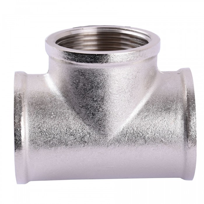 Тройник латунный никелированный - это фитинг, который используется как деталь трубопровода для присоединения труб к основной магистрали под углом 90 градусов и представляет собой объединённые полые цилиндры из латуни с резьбами.