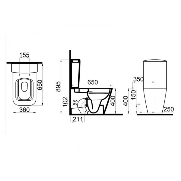Унитаз-компакт напольный керамический: - цвет белый глянец; - размеры 360*650*895; - чаша унитаза с универсальным выпуском; - выполнен по технологии Iderimless (безободковый) - бачок с механизмом двойного смыва; - имее...
