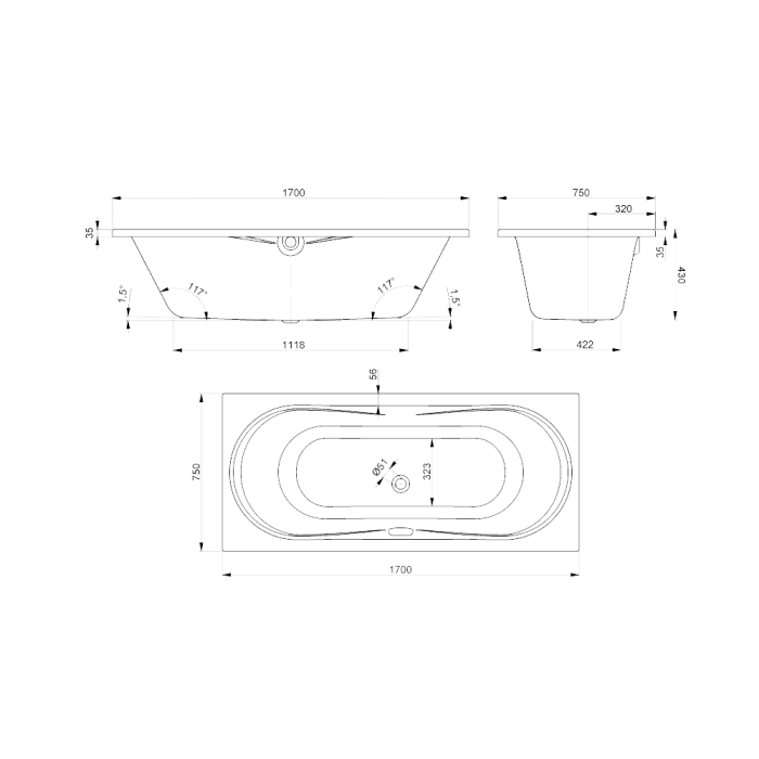 Ванна акриловая DEVIT Katarina 170х75 см 17075131 с ножками