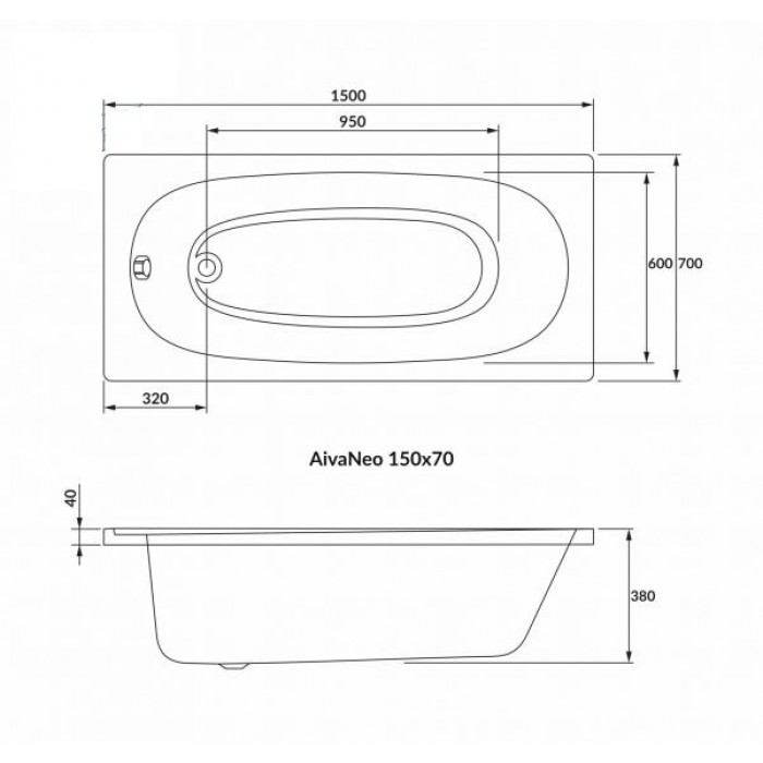 Ванна Volle AIVA NEO 150x70 см без ножек, 1229.001570