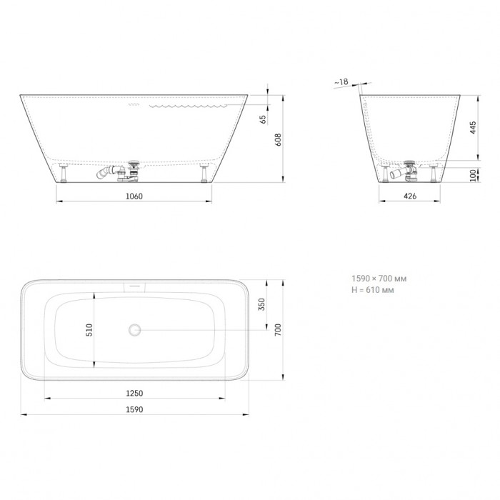 Ванна отдельностоящая 159 см из литого искусственного камня Silkstone PAA VAQUAS/00 QUADRO (с интегрированным сифоном, цвет белый мат)