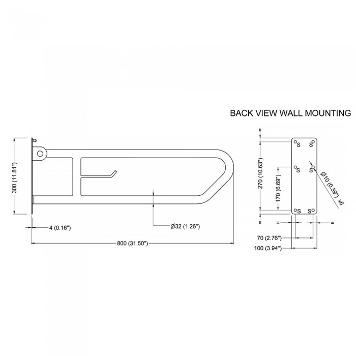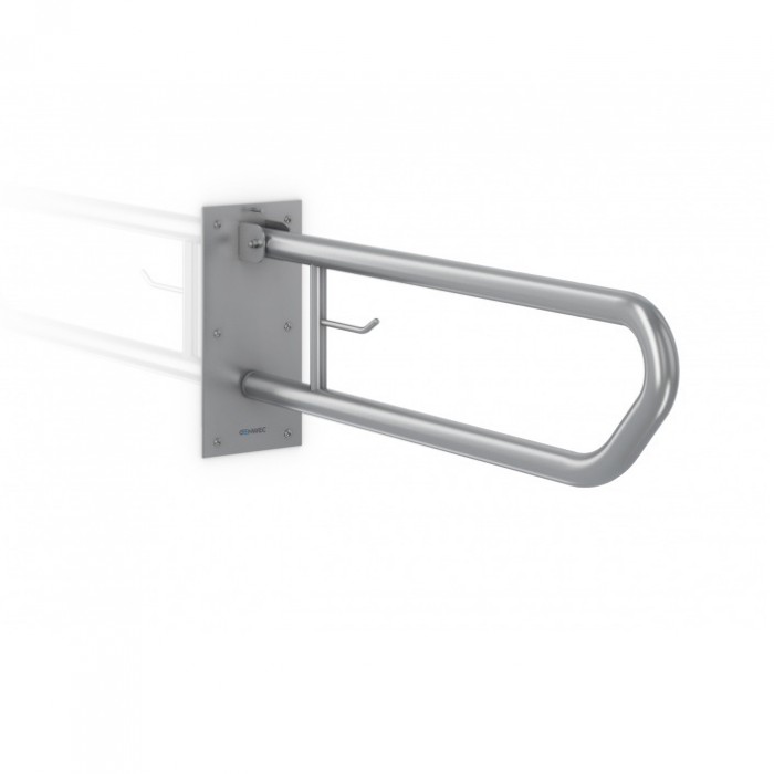 Откидной поручень для инвалидов с держателем туалетной бумаги GENWEC GW11 07 04 01 (нержавеющая сталь матовая, 800мм)