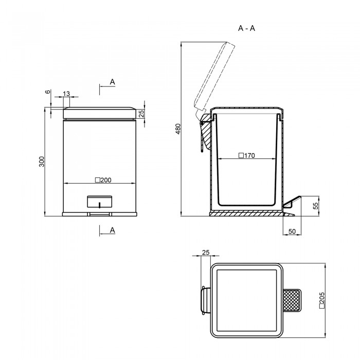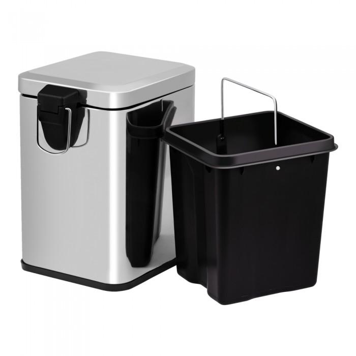 Ведро для мусора. Lidz (CRM) 121.11.06 на 6 л не займет много места благодаря небольшим габаритам и подойдет для любого интерьера, придав ему целостности. Изделие изготовлено из качественного металла, что защищает от влаги и обеспечивает его долговечность. Нижнее основание защищено резиновым уплотнением для избегания скольжения по полу. Крышка ведра открывается с помощью нажатия на металлическую прорезиненную педаль. Внутренний бак оборудован ручкой для быстрого и удобного вынимания из урны.