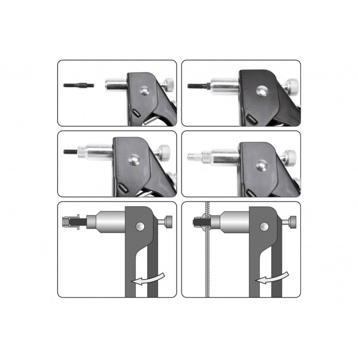 Заклепочник резьбовой 70270 предназначен для прочного соединения несколько деталей при помощи резьбовых металлических заклепок М3, М4, М5, М6. Прочная эргономическая конструкция дополнена удобными пластиковыми рукоятками.