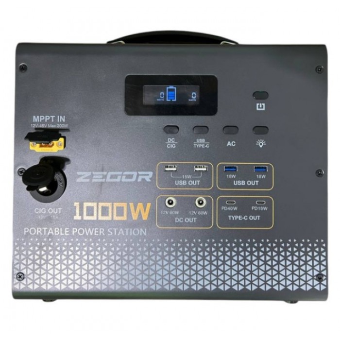 Зарядна станція Zegor YC1100 (акумулятор BYD, Чиста синусоїда, 1000 Вт ,пікова потужність 2000 Вт, 1137.6 Вт/год)