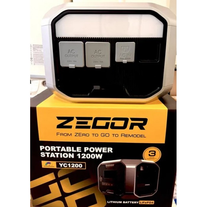 Зарядна станція Zegor YC1200 (акумулятор BYD, Чиста синусоїда, 1200 Вт ,пікова потужність 2400 Вт, 1310 Вт/год)