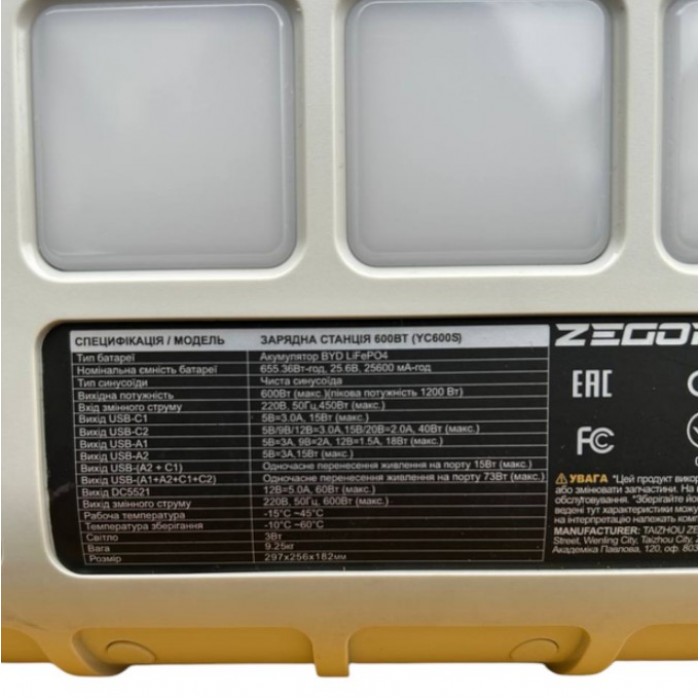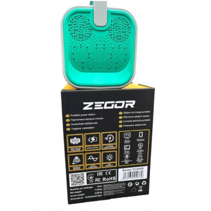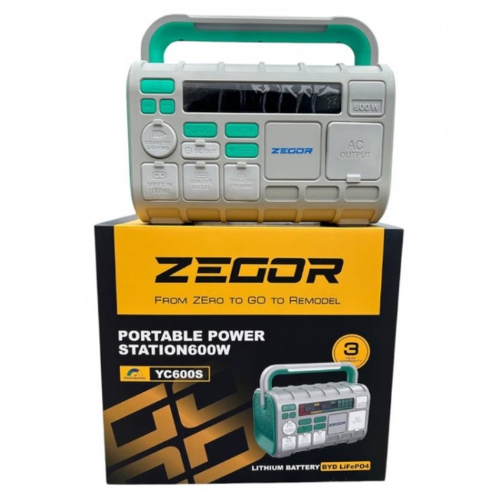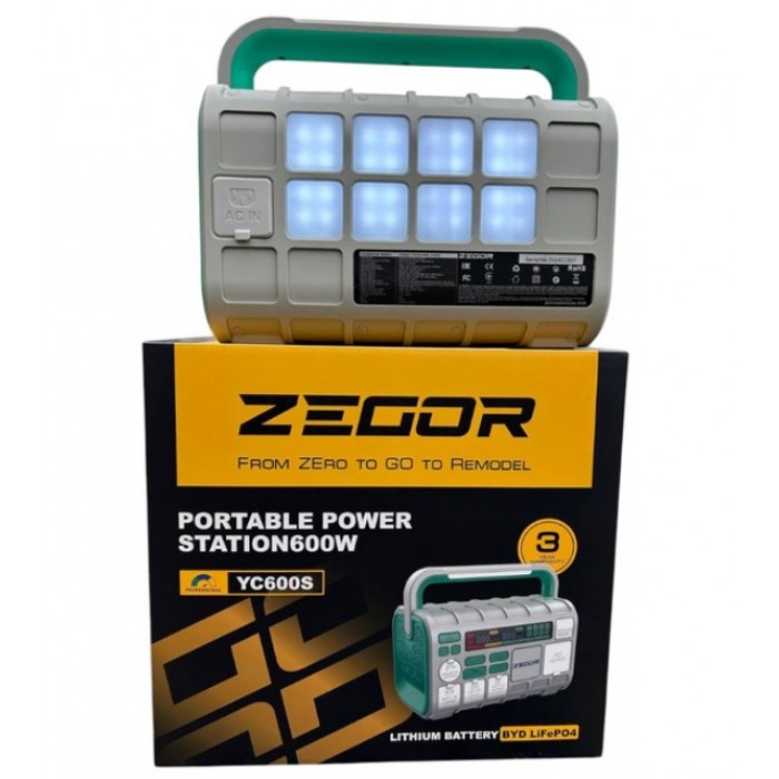 Зарядна станція Zegor YC600S (акумулятор BYD, Чиста синусоїда, 600 Вт ,пікова потужність 1200Вт, 655.36 Вт/год)